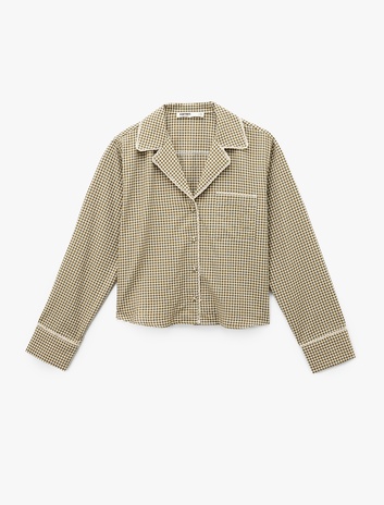 Rahat Kalıp Uzun Kollu Gömlek Yaka Crop Ekoseli Pijama Üstü