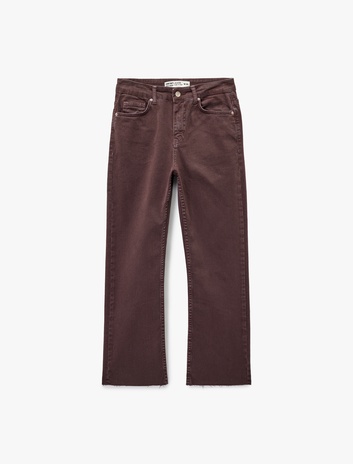 Pamuklu Dar Kalıp Düğmeli Cepli İspanyol Paça Crop Jean Pantolon -  Kick Flare Jeans Sepete Ekle
