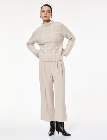 Pile Detaylı Düz Geniş Kısa Paça Kumaş Pantolon Sepete Ekle