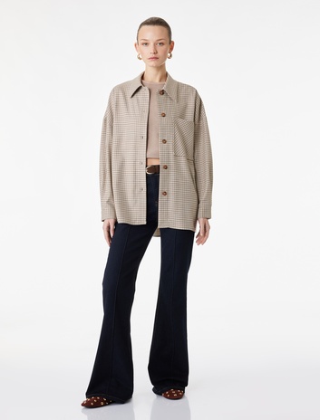 Uzun Kollu Cep Detaylı Oversize Ekose Gömlek Ceket