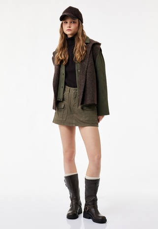 Standart Bel Düğmeli Aplike Detaylı A Kesim Pileli Mini Etek Sepete Ekle