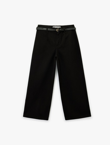 Pamuklu Cep Detaylı Düğmeli Kısa Geniş Paça Pantolon Sepete Ekle