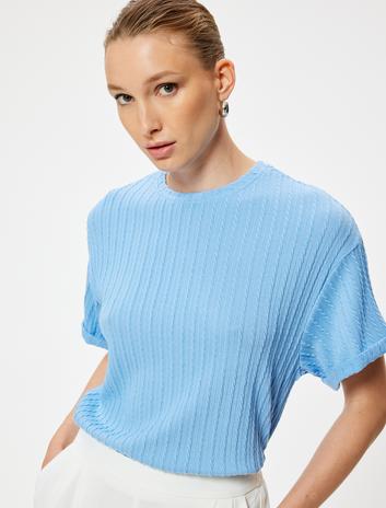 Dokulu Kısa Kollu Tişört Bisiklet Yaka Sepete Ekle