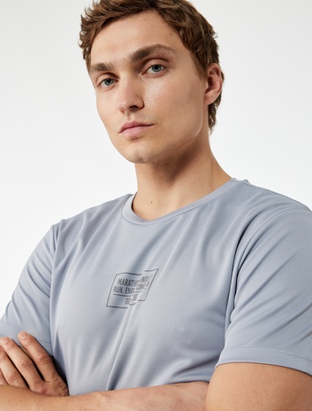 Regular Fit Kısa Kollu Bisiklet Yaka Baskılı Pamuklu Spor Tişört Sepete Ekle