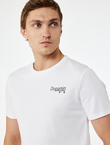 Kısa Kollu Bisiklet Yaka Baskılı Spor Tişört