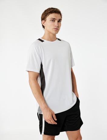 Kısa Reglan Kollu Renk Kontrastlı Bisiklet Yaka Spor Tişört