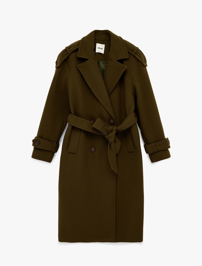 Kemerli Trenç Kaban Kaşe Kruvaze Düğmeli Uzun Kollu Sepete Ekle