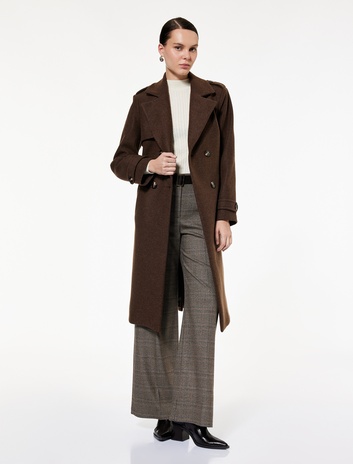 Uzun Kollu Cepli Kemerli Uzun Kaşe Kaban