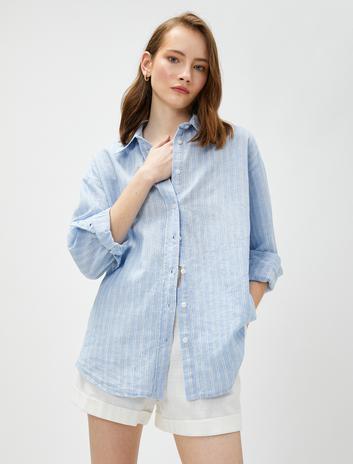 Keten Karışımlı Gömlek Uzun Kollu