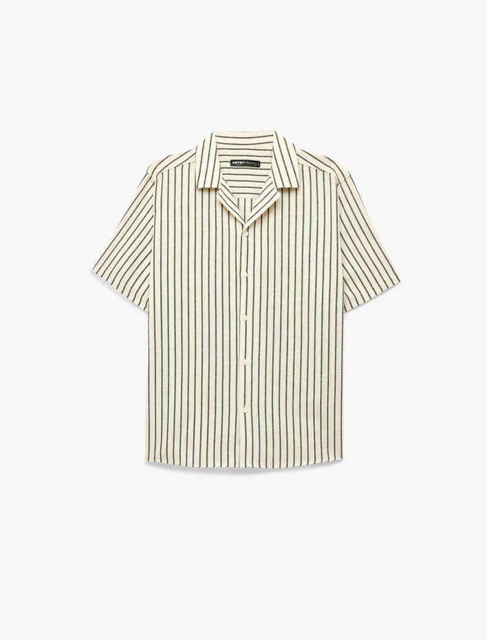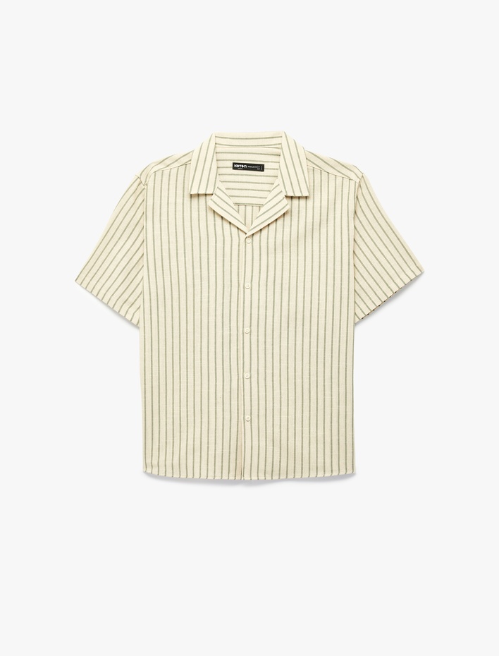 Regular Fit Kısa Kollu Pamuklu Devrik Yaka Çizgili Gömlek