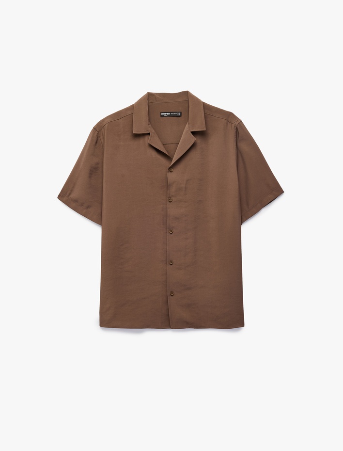 Regular Fit Kısa Kollu Düğmeli Devrik Yaka Modal Gömlek