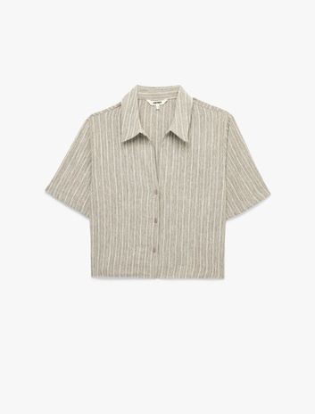 Regular Fit Kaçık Yaka Kısa Kollu Crop Gömlek