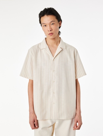 Regular Fit Kısa Kollu Pamuklu Devrik Yaka Çizgili Gömlek