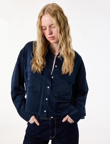 Regular Fit Uzun Kollu Kapaklı Cep Detaylı Saten Crop Gömlek