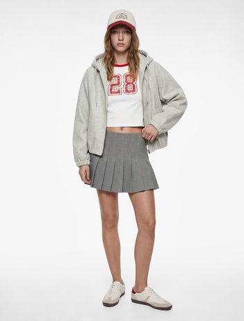 Cepli Fermuarlı Uzun Kollu Kapüşonlu Kaşe Bomber Ceket