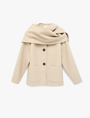 Uzun Kollu Düğmeli Cepli Atkılı Kaşe Ceket Sepete Ekle