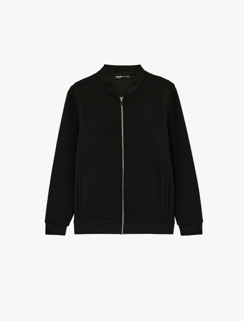 Viskon Karışımlı Dik Yaka Uzun Kollu Fermuarlı Spor Ceket Sepete Ekle