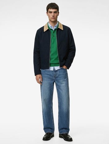 Regular Fit Uzun Kollu Renk Kontrastlı Gömlek Yaka Pamuklu Fermuarlı Gabardin Ceket Sepete Ekle
