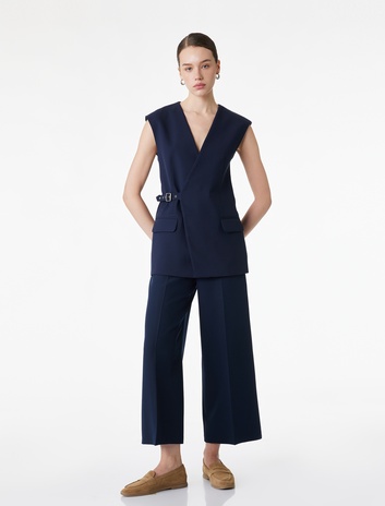Koton X Şahika Ercümen - Pileli Cepli Uzun Geniş Paça Kumaş Pantolon