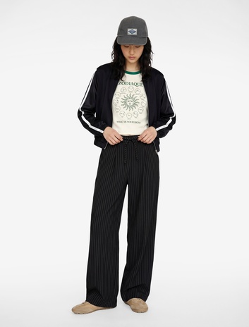 Uzun Geniş Paça Çizgili Kumaş Pantolon Sepete Ekle