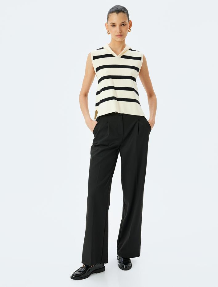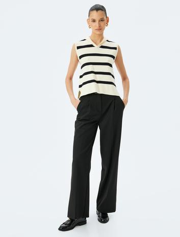 Çizgili Geniş Paça Yüksek Bel Kumaş Pantolon Sepete Ekle