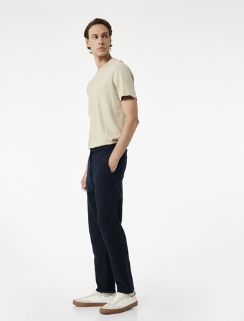 Keten Pamuk Karışımlı Beli Bağcıklı Chino Pantolon Sepete Ekle