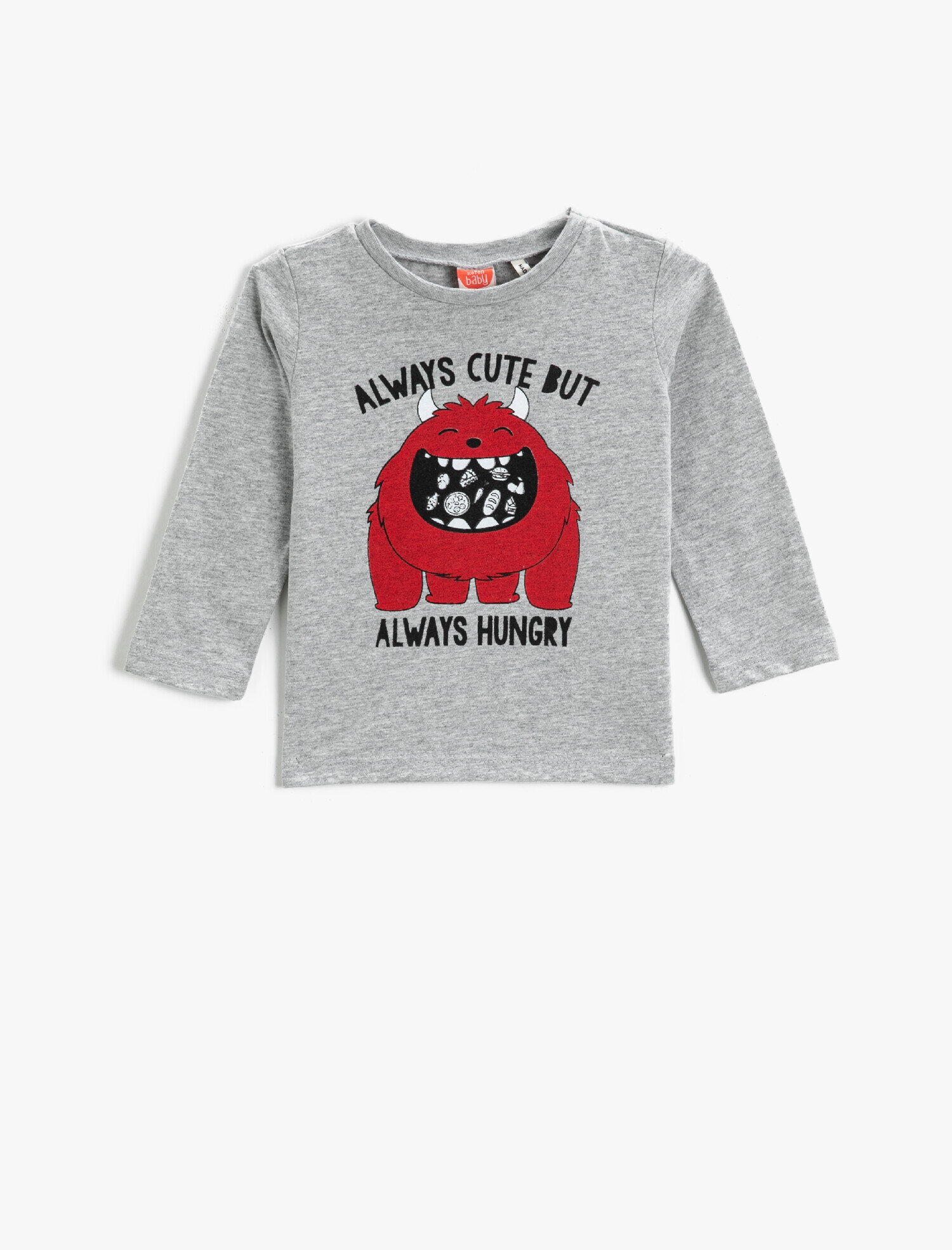 Canavar Baskılı, Uzun Kollu Tişört.Ürünlerimiz sağlığa zararlı kimyasallara karşı test edilmektedir.Ürünlerimizde bebeklerin yutabileceği küçük parçalar, tehlike oluşturabilecek ip ve kordonlar, keskin parçalar bulunmamaktadır.
