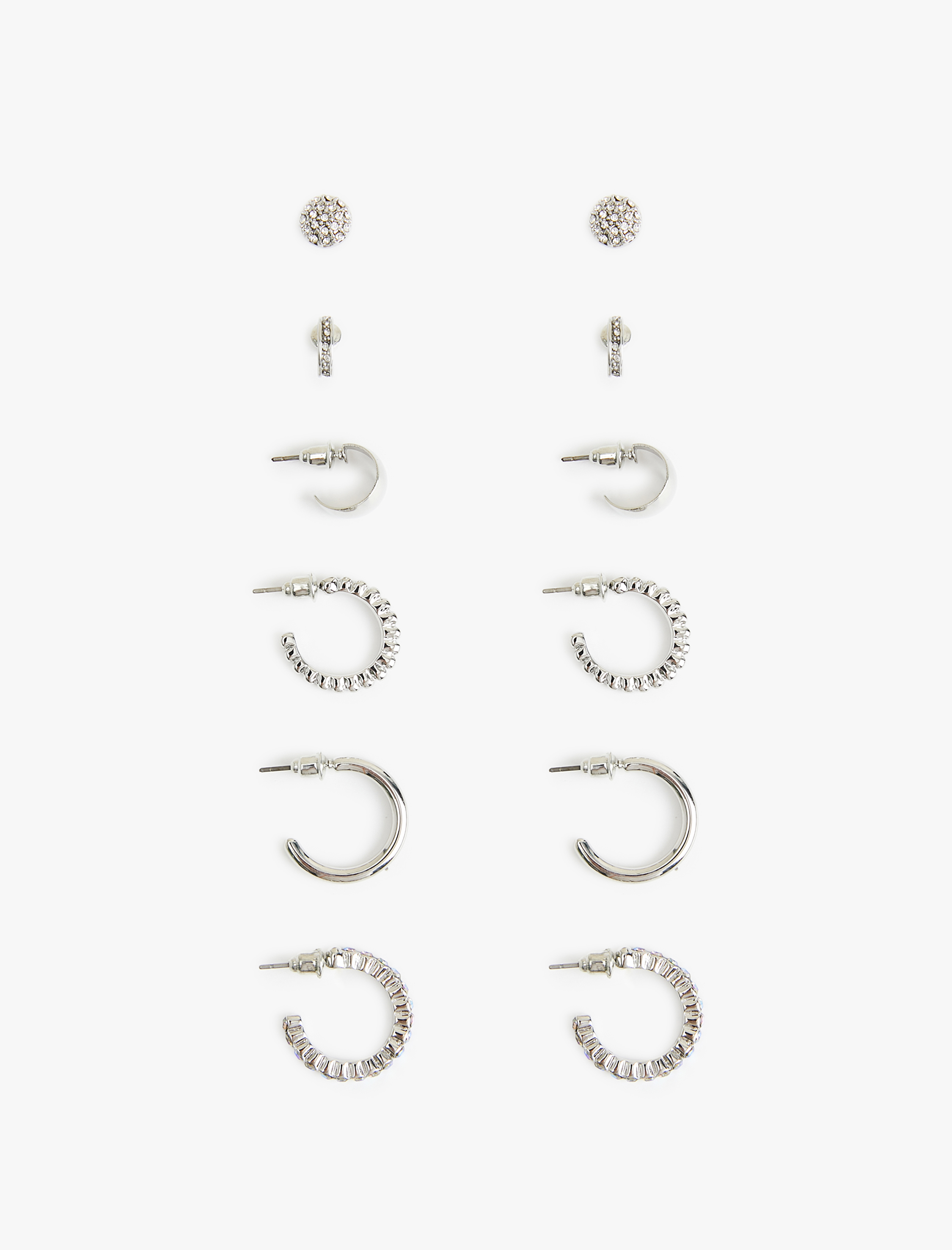 Kadın Çelik Karışımlı Taş Detaylı 6'lı Top ve Halka Küpe Seti  Kadın Çelik Karışımlı Taş Detaylı 6'lı Top ve Halka Küpe Seti  Kadın Çelik Karışımlı Taş Detaylı 6'lı Top ve Halka Küpe Seti
