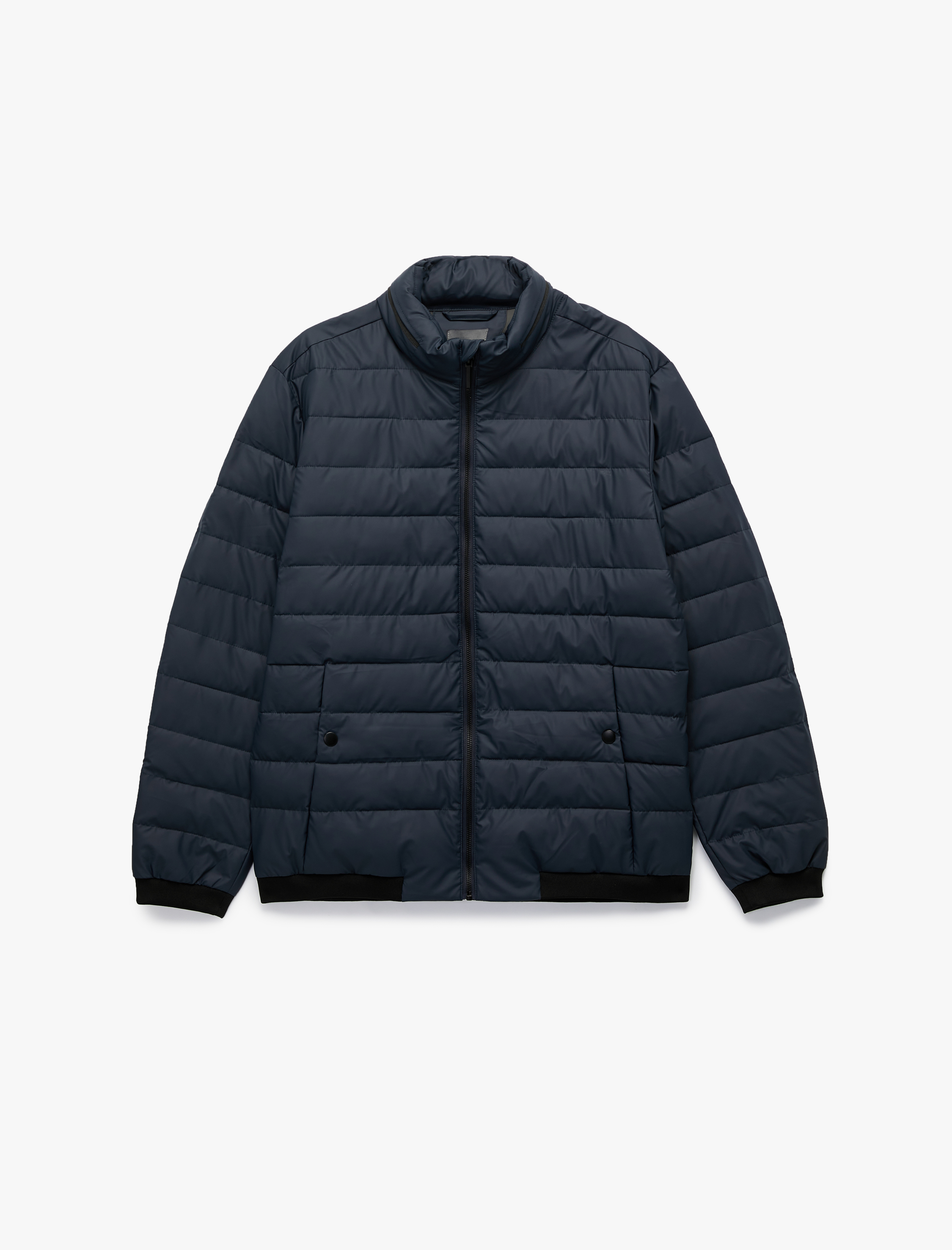 Cep Detaylı Uzun Kollu Fermuarlı Dik Yaka Şişme Mont