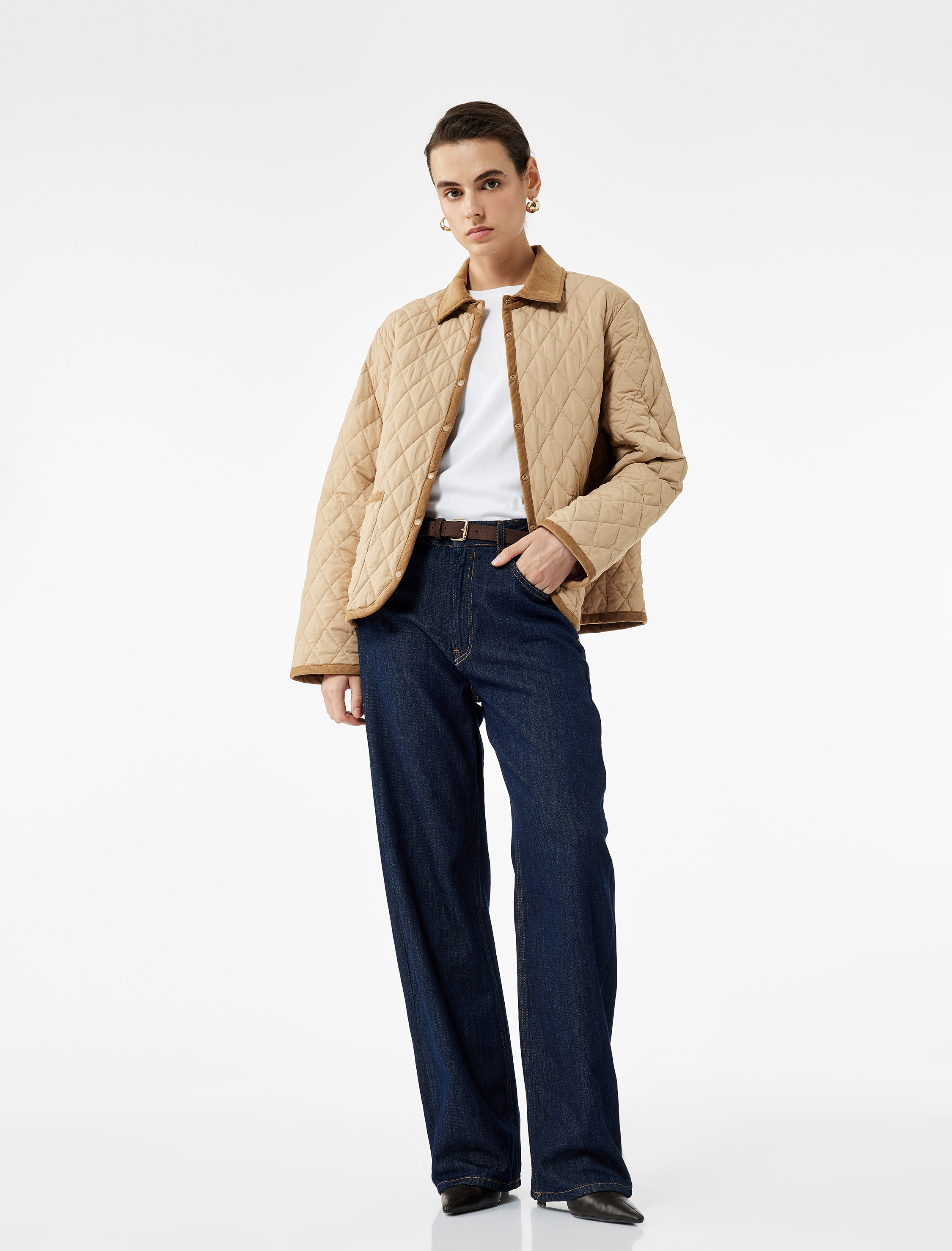 Cepli Düğmeli Uzun Kollu Su İtici Mevsimlik Kapitone Mont