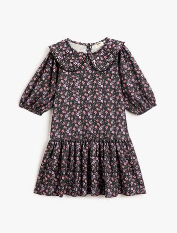 Kız Çocuk Çiçekli Midi Elbise Bebe Yaka