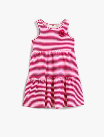Kız Çocuk Çiçekli Çizgili Kolsuz Elbise Pamuklu