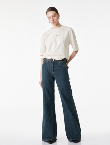 Pamuklu Kısa Kollu Bisiklet Yaka Arkası Ayçiçek Baskılı Oversize Tişört Sepete Ekle