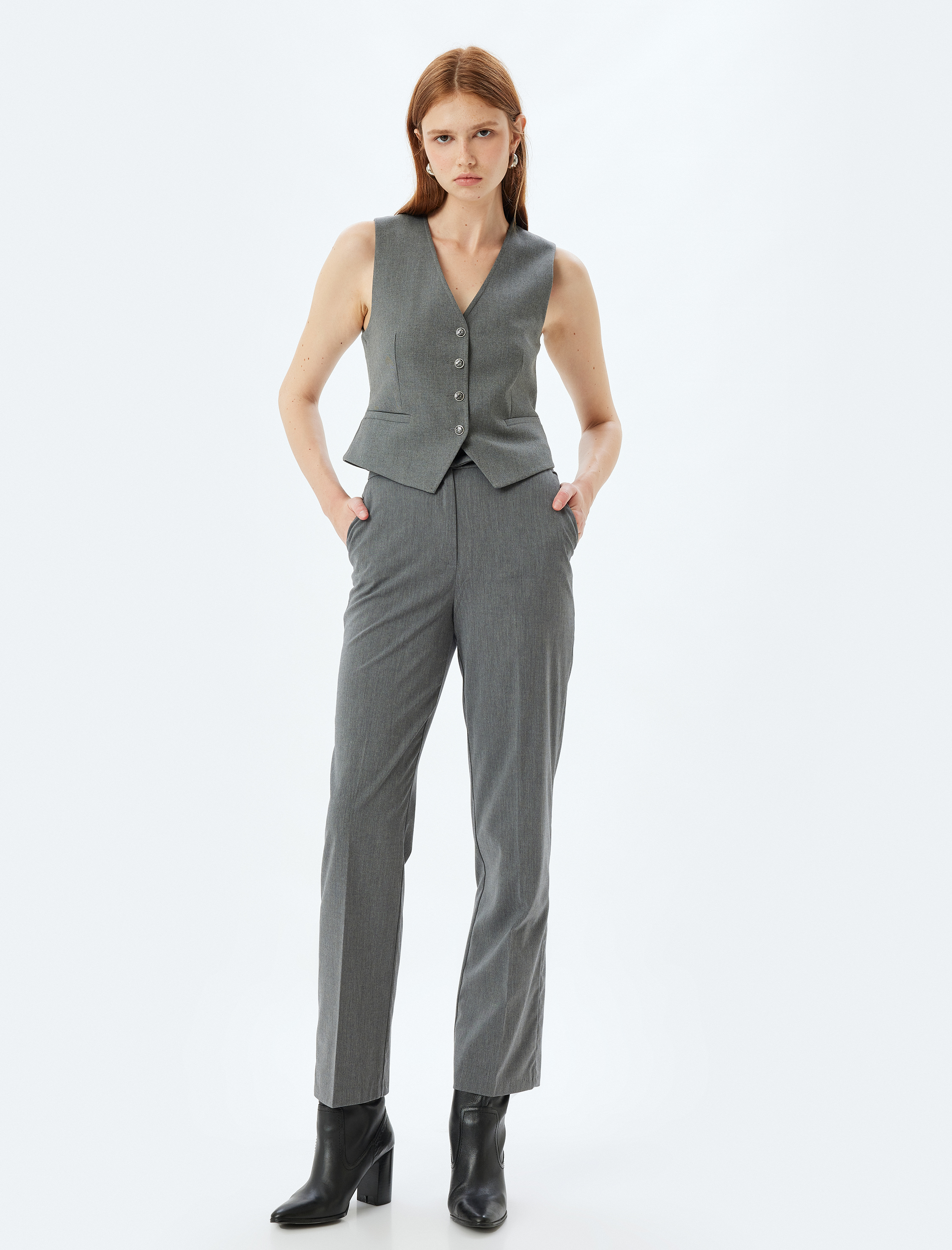 Cigarette Kumaş Pantolon Cepli Standart Bel
