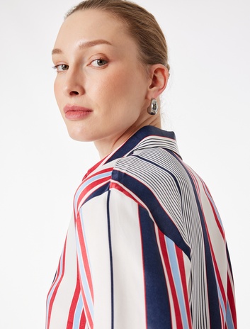 Viskon Karışımlı Uzun Kollu Düğme Aksesuarlı Klasik Yaka Çizgili Gömlek Sepete Ekle
