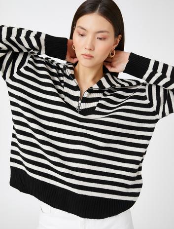 Dik Yaka Triko Kazak Fermuarlı Sepete Ekle