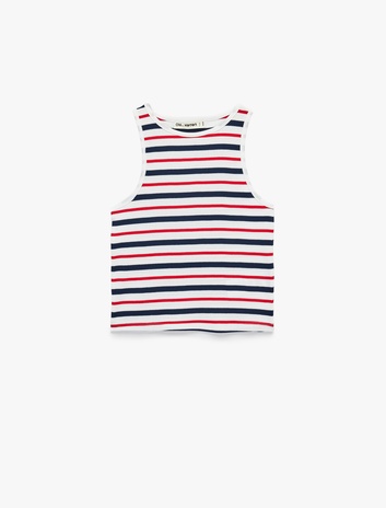 Pamuklu Kolsuz Bisiklet Yaka Çizgili Atlet Sepete Ekle