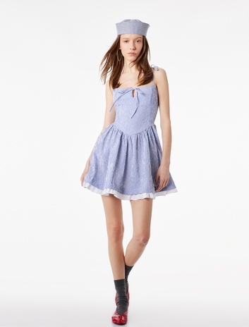 Kolsuz Bağlamalı Yaka Volanlı Çizgili Kloş Mini Askılı Elbise Sepete Ekle