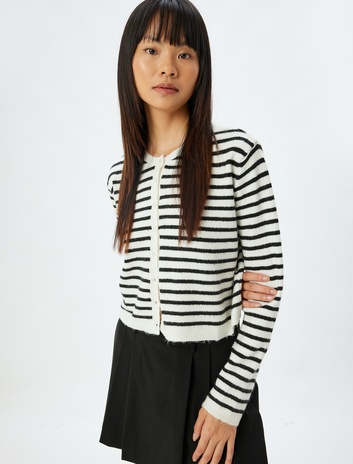 Bisiklet Yaka Hırka Uzun Kollu Düğmeli