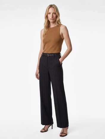 Cepli Kemerli Düz Geniş Paça Çizgili Kumaş Pantolon Sepete Ekle