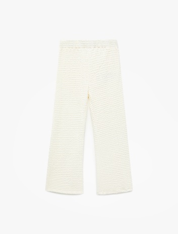 Kız Çocuk Beli Lastikli Dokulu Geniş Paça Pantolon