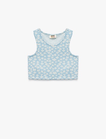 Kız Çocuk Bisiklet Yaka Kolsuz Çiçek Desenli Crop Atlet