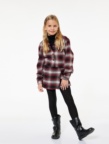 Kız Çocuk Ekose Desenli Kemer Detaylı Pileli Şort Etek