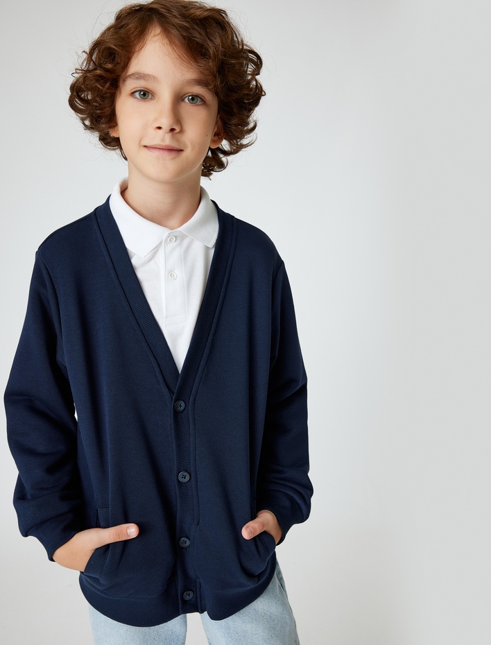 Erkek Çocuk Uzun Kollu V Yaka Düğmeli Basic Hırka