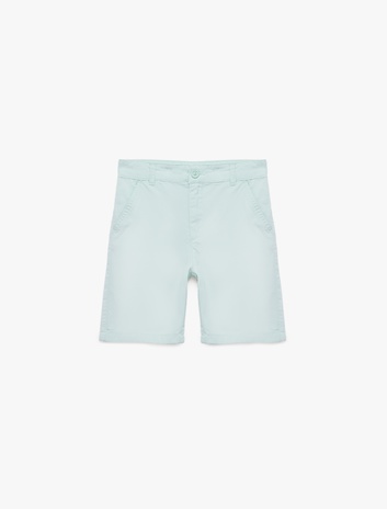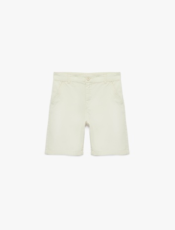 Pamuklu Beli Ayarlanabilir Lastikli Cepli Düğmeli Basic Şort Sepete Ekle