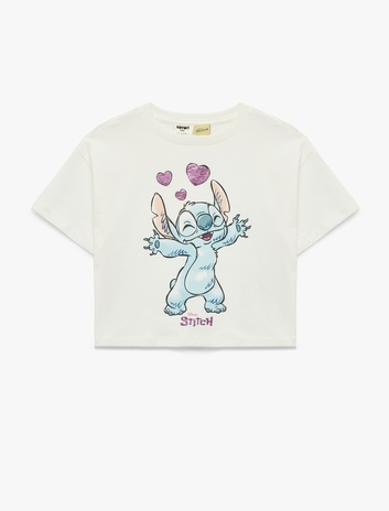 Stitch Baskılı Kısa Kollu Bisiklet Yaka Pamuklu Lisanslı Tişört Sepete Ekle