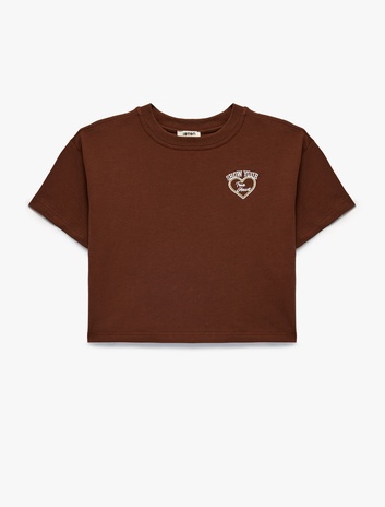Pamuklu Kısa Kollu Bisiklet Yaka Arkası Baskılı Tişört Sepete Ekle