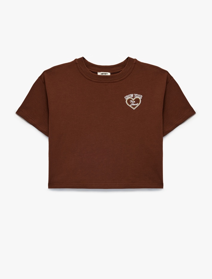 Pamuklu Kısa Kollu Bisiklet Yaka Kalp Baskılı Tişört Sepete Ekle