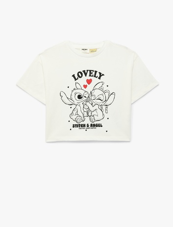 Lisanslı Stitch Baskılı Uzun Kollu Bisiklet Yaka Pamuklu Tişört Sepete Ekle