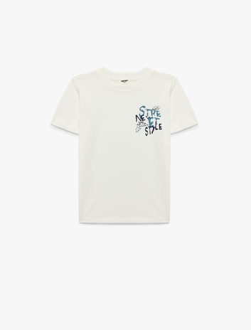 Pamuklu Kısa Kollu Bisiklet Yaka Baskılı Tişört Sepete Ekle